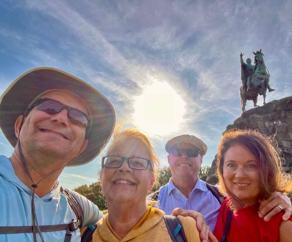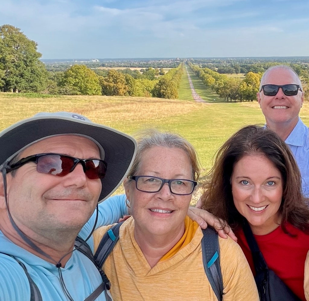 What a full day this was! Our sixteen-mile walk started at Windsor Castle, and our stroll along the Long Walk through Windsor Great Park took us past many mature deer. We were reminded how small we are by the Air Force Memorial, the acre of land gifted to the US after JFK’s assassination, and the location of the signing of the Magna Carta in 1215. After six miles, we finally made it to the river and enjoyed locks, a sailboat, many beautiful flowers, and passed under two motorways. A roast beef dinner and a lunar eclipse closed out a full day – all of which was spent under Heathrow’s flight path.