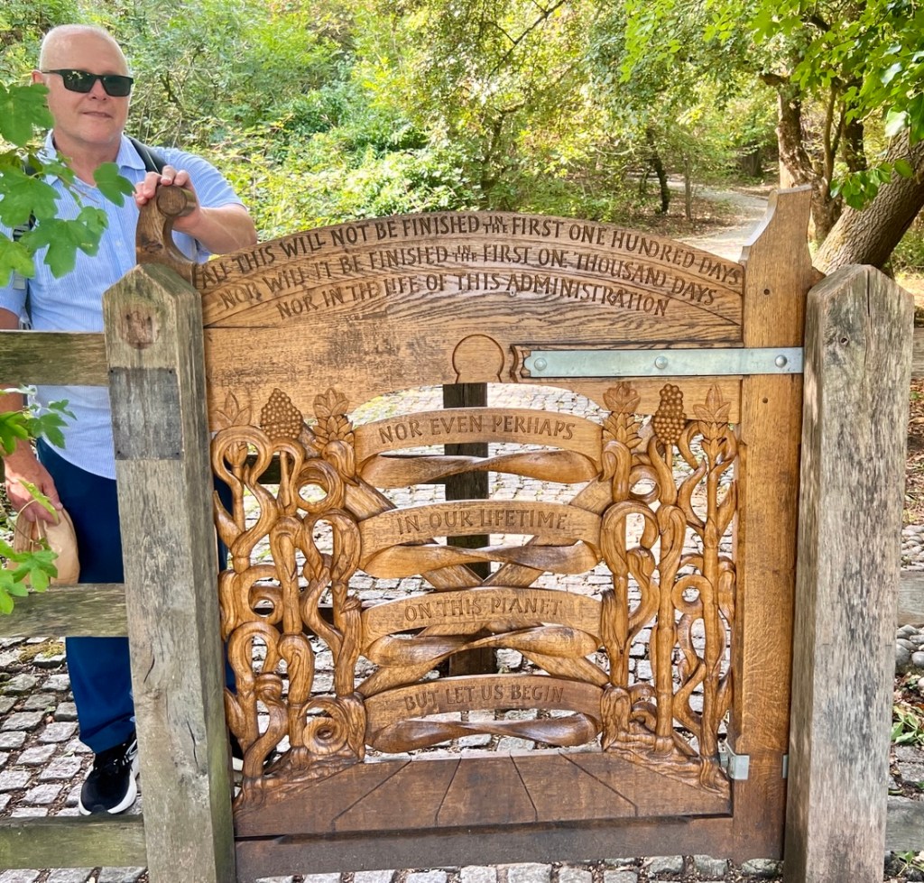 The entrance plaque to the memorial.This intricately carved gate includes some words from JFK’s inauguration speech.The natural-born Americans and the stone dedicated to JFK, which says, “Let every nation know, whether it wishes us well or ill, that we shall pay any price, bear any burden, meet any hardship, support any friend or oppose any foe in order to assure the survival and success of liberty.”
