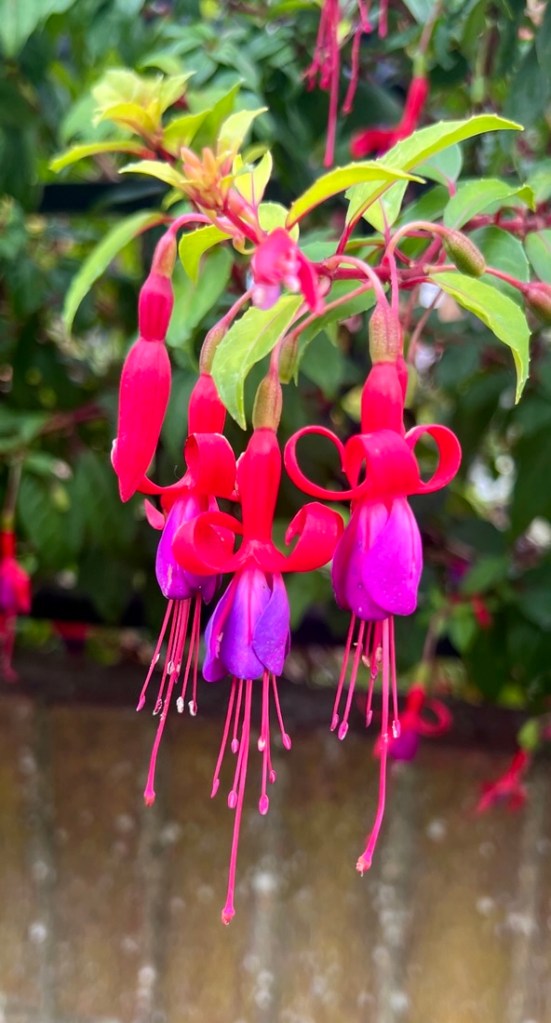 Passiflora caerulea, commonly known as the Blue Passion Flower.The fruit of the Blue Passion Flower.A Hardy Fuchsia.Salvia microphylla, also known as Hot Lips.