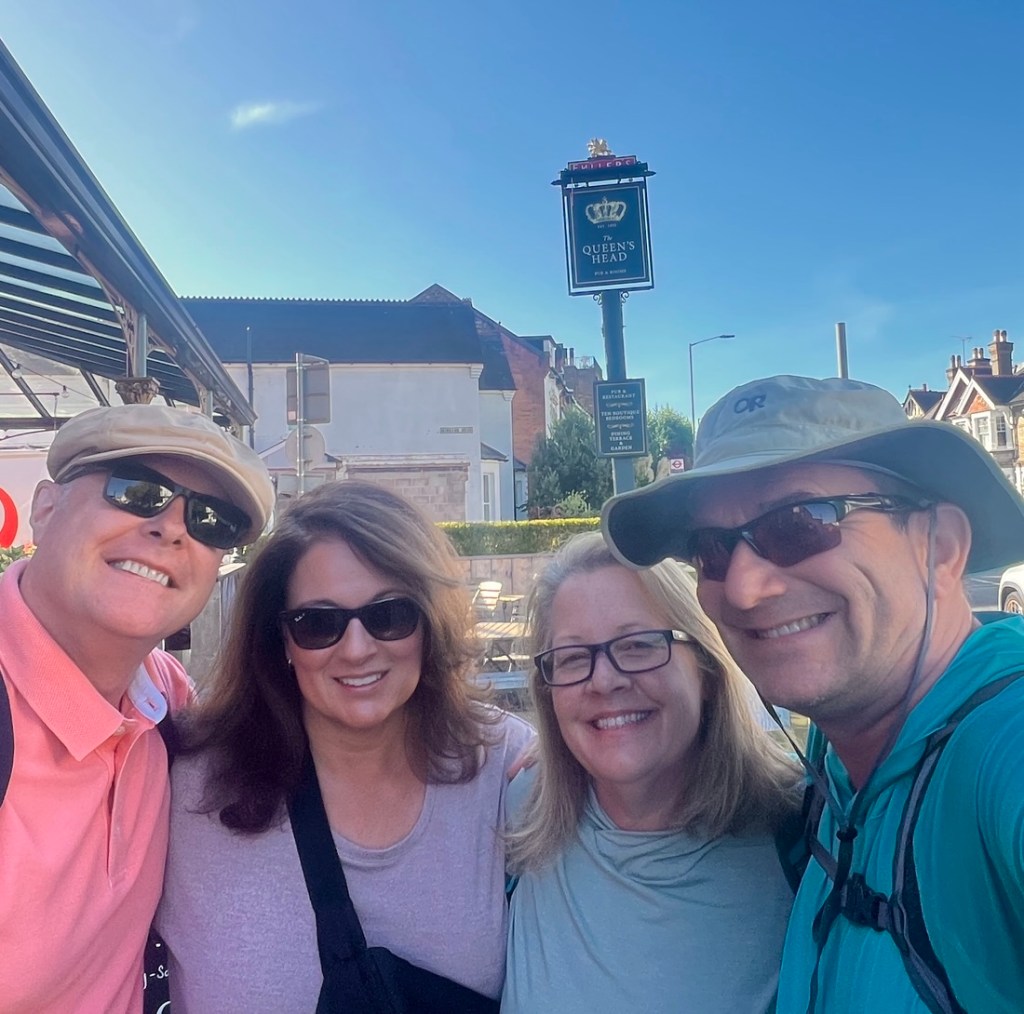 The day had felt like a long thirteen miles so we were glad to get to the hotel, though carrying our bags up some narrow stairs was challenging for our legs! We had a lot of fun at dinner and talked about the next day through downtown London. The weather forecast is a pretty wet day so we shall have to see how it goes though I am sure it won’t dampen our spirits.