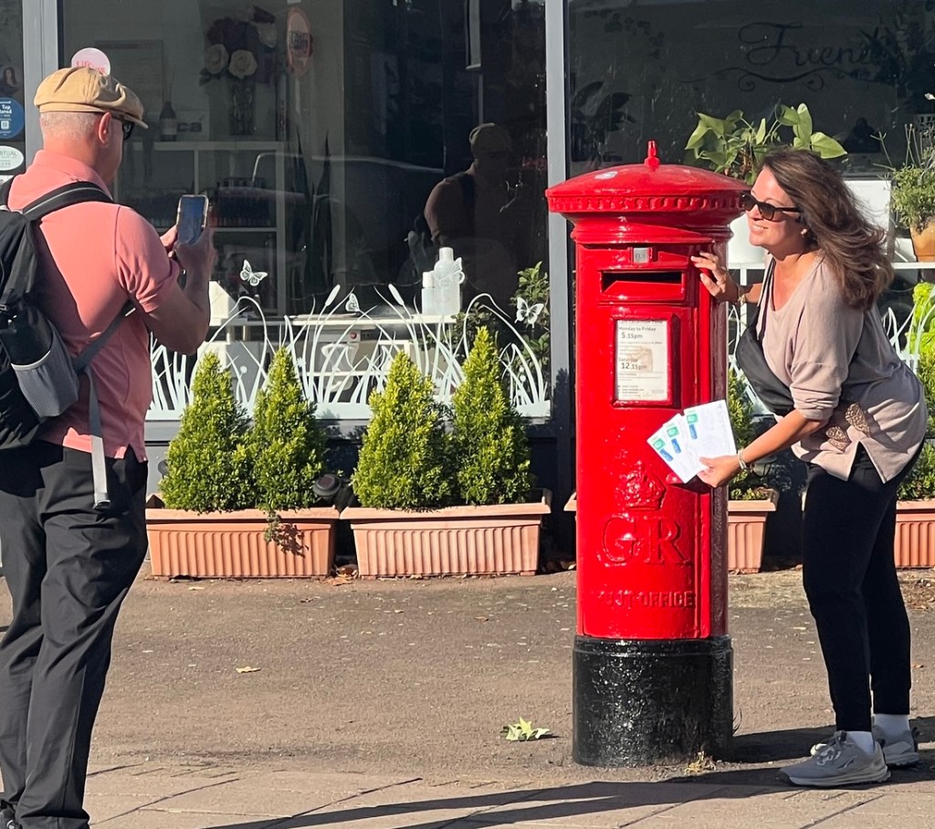 The Thames Team was ready for the day!Keesha and Eric were excited to post their postcards in this post box from George VI’s reign.