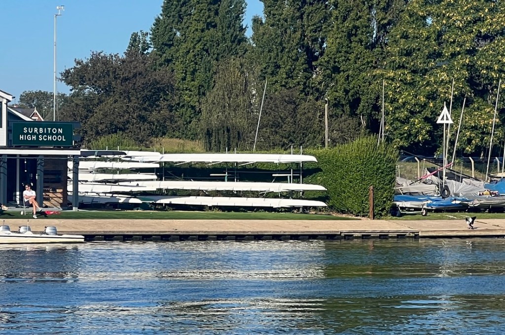 What a beautiful morning!A local school enjoys water sports on the river.It felt quite rural as we approached Teddington Lock.There were more boats closer to the lock.We are on the right trail!
