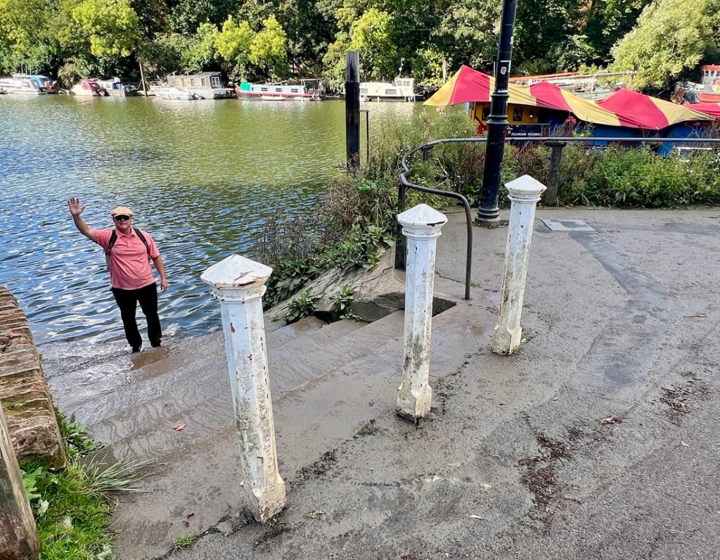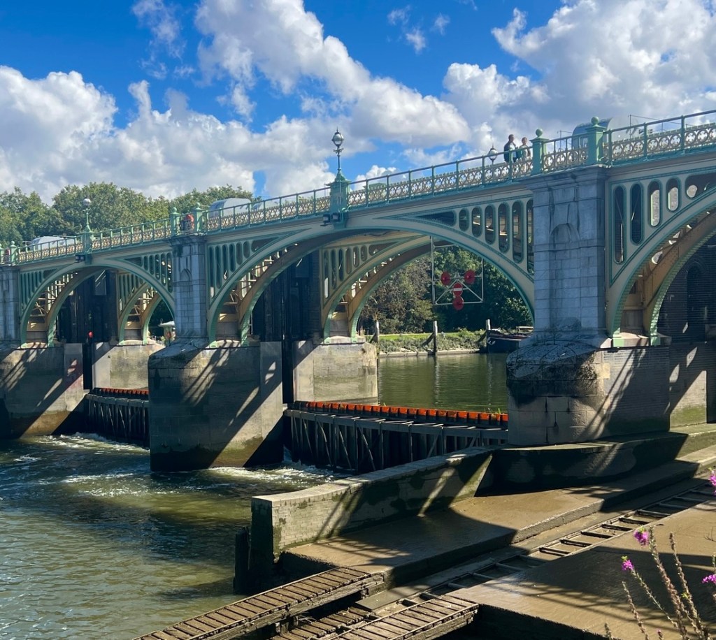 We walked past Teddington Lock. While it remained quite rural until Richmond, the tidal effect on river started to have an impact.
