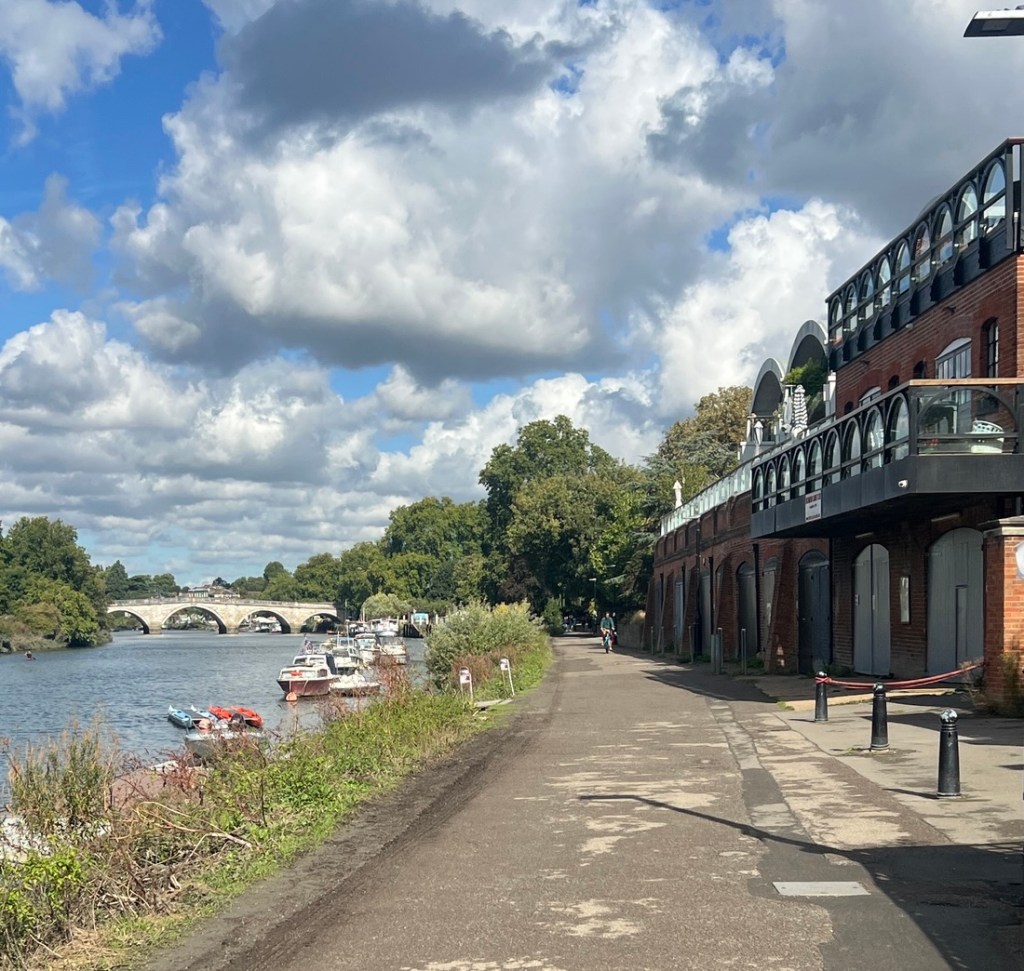 I had read that the path on the right bank was closed somewhere ahead, so we crossed over Richmond Bridge and enjoyed tea and cake at a cafe before continuing on the left side.