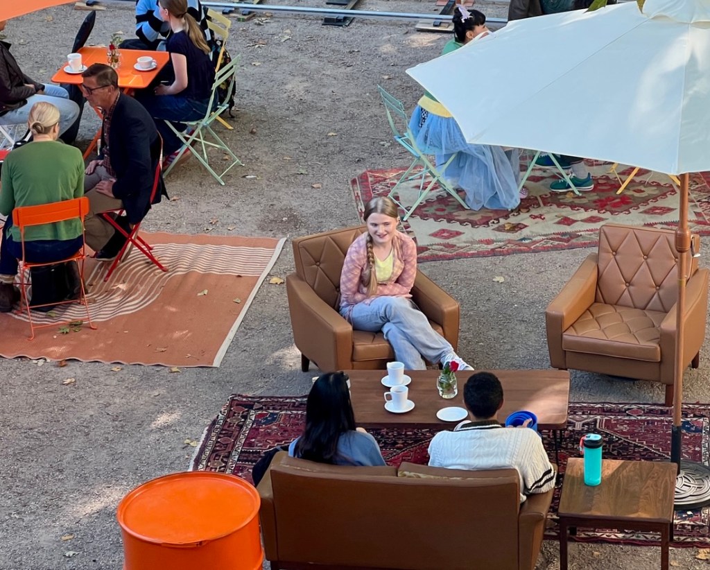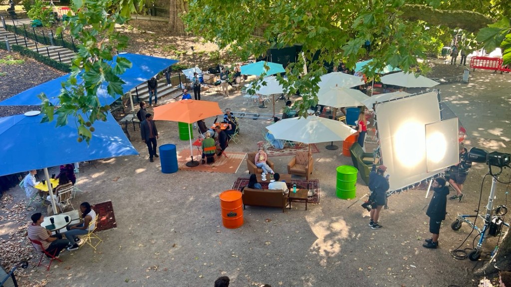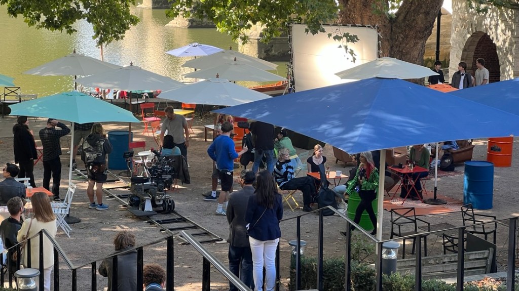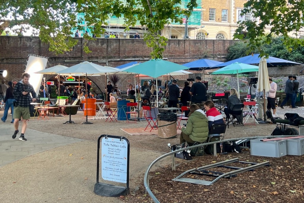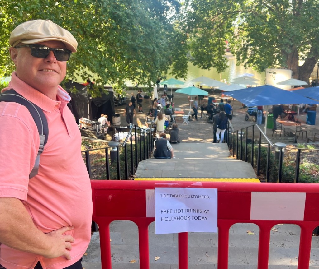 As we approached the coffee shop at the bridge, we noticed a changing room tent, a green room tent, and equipment. The cafe was cordoned off as they were filming an episode of Geek Girl, a Netflix series. It was fun to watch. They wanted dapper Eric to play the role of an extra but we didn’t have the time…