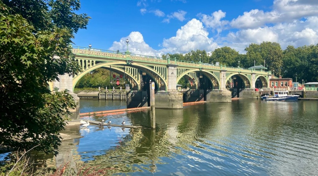 Cool views downstream towards the Richmond Railway Bridge and Twickenham Bridge.What do you want?We wanted tea and cake and found it!