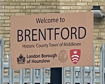 The Richmond Railway Bridge was built in 1908.Twickenham Bridge has a lock that holds the water back at low tide, but lets boats pass at high tide.Twickenham Bridge from downstream.We spotted where the far bank had collapsed, taking the tow path with it and closing the trail.A peaceful river, except for the planes that went overhead every minute on their final approach to Heathrow.How to solve the challenge of parallel parking!A pub and an old church on the left bank, with an island between them and the main Thames channel. This might have been where Julius Caesar crossed the Thames in 54 BC.A tributary flows into the Thames and the walls show the high tide mark.The planes were pretty close!The Syon park estate.Spot the plane!We were in the town of Brentford which was the home of the football team my Dad supported.The trail went through some sketchy areas but only for short distances.Back at the river, there was a wide variety of boats sitting on the mud at low tide, like this lifeboat.A large barge.While the moored boats looked quite junky, the blocks of flats were getting fancier.We were happy to get to Kew Bridge, cross back over the river, and get this view upstream. The water on this buoy showed it was flowing upstream very fast, caused by the rapidly rising tide.