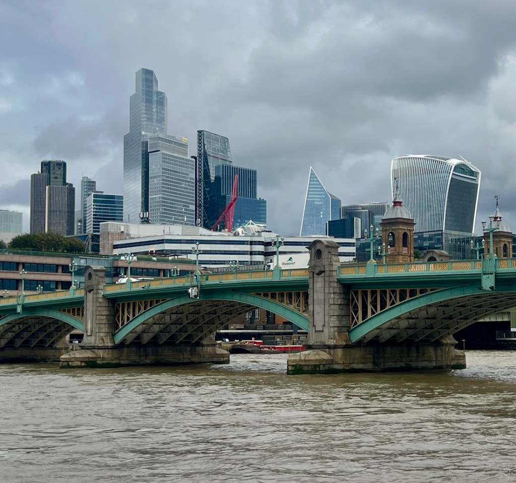 Cannon Street Railway Bridge, with the Walkie Talkie skyscraper behind.