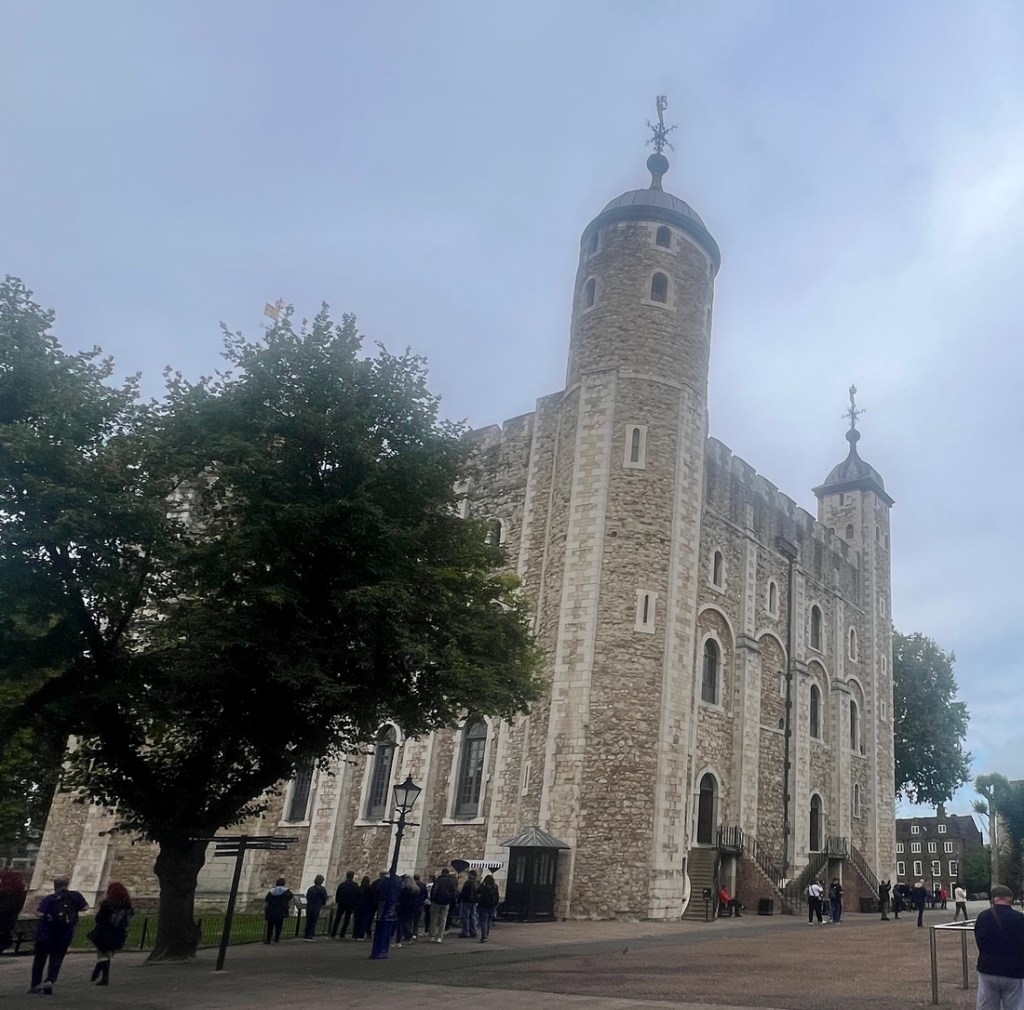 We started by checking out the Crown Jewels in The Tower. No photos were allowed. We were impressed by the size of some of the jewels. Having visited them just two months earlier, two things stood out to me. First, how the monarch’s coronation is such a Christian ceremony, with crosses prominent in the coronation regalia and the ceremony having multiple biblical echoes. I was also very happy to understand more about their history, that the Crown Jewels were all destroyed in 1649 by Oliver Cromwell when he defeated and killed Charles I in the English Civil War. A new set was made for the coronation of Charles II in 1661. The Coronation Spoon from the 12th-Century was the only item in the original Crown Jewels that survived.