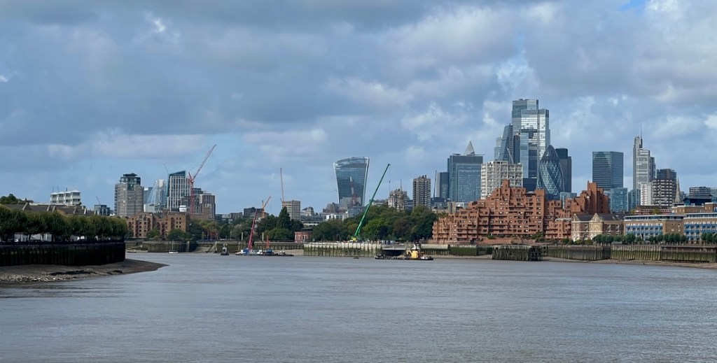 After the Tower, we were back on the Thames Path Trail. I chose to take the path on the north bank as it took us through the historic docklands district and many places that I had heard of such as Wapping, Shadwell, Limehouse, Canary Wharf, and Millwall. These areas were heavily bombed in WW2, as the bend in the river had many docks and were a target. After the war, the area struggled to redevelop due to the legacy of docks and the lack of public transport. That changed in the 80s with more flexible planning permission and the opening of the Docklands Light Railway, and the area is London’s second financial district and home to many banks.