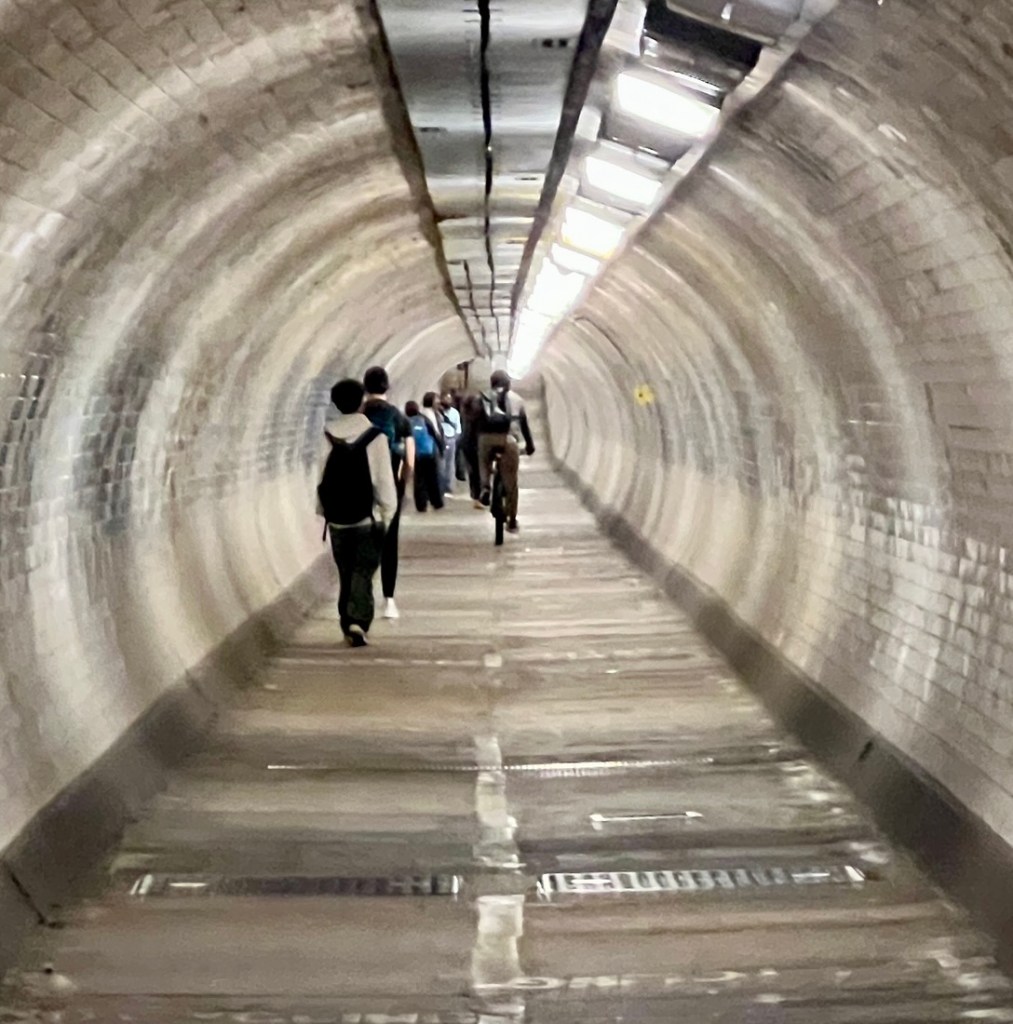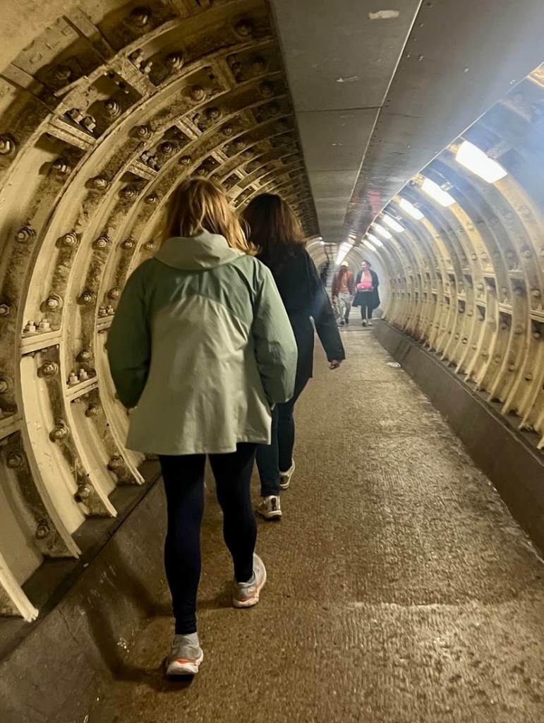 Our final day’s walk was enhanced with a visit to the Crown Jewels and disrupted with a thunderstorm. We walked under the Thames from London’s new financial district to its historical naval centre: Greenwich.