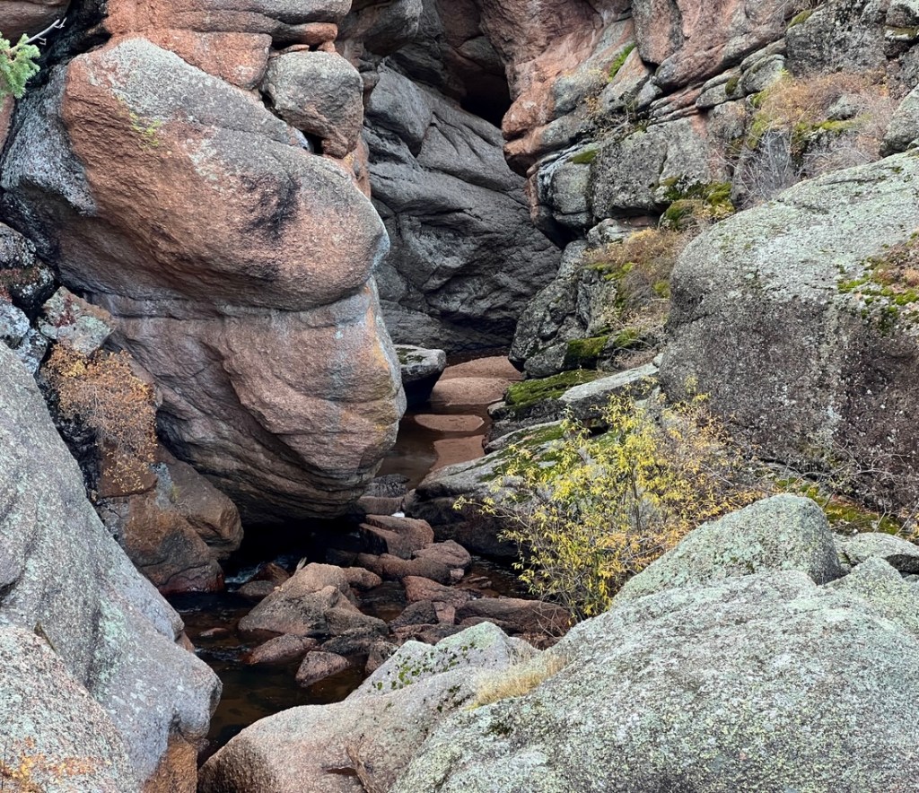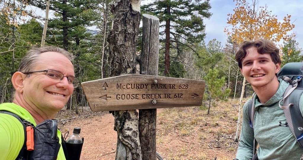 My preparation tools were the Colorado Mountain Club’s The Best Lost Creek Wilderness Hikes by Matt Enquist, and Outdoor Trail Maps’s 1:48,000 scale map of the Lost Creek Wilderness, with AllTrails, YouTube, and random blogs providing useful background. Goose Creek Trailhead was the most accessible entry point that supported loop hikes. With three nights in the wilderness, we had a 22 mile and a 39 mile option. With lots of other things going on in both of our lives, I opted for the 22 mile loop and was not disappointed. From the trailhead, this loop heads north along Goose Creek Trail before turning left onto McCurdy Park Trail and into Refrigerator Gulch. The loop takes the Brookside-McCurdy Trail for about a mile before taking a left onto Lake Park Trail and up to the loop’s high point at over 11,500ft before descending down to Hankins Pass Trail and back to the trailhead. The forecast looked fair with temperatures in the 40s and 50s and little rain, so our usual approach to gear and food worked, resulting in starting weights of 19 and 29lb packs. I travelled from Houston to Golden on the Tuesday to give me a couple of nights over 5,000ft to help acclimate to the altitude before sleeping at over 8,000ft.