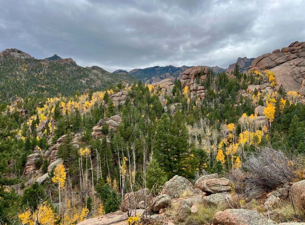 There is always something special about heading into the wilderness. In the US, wilderness areas are public lands with special protections that prohibit motorized and mechanized equipment, helping ensure that visit are natural experiences. When I heard that Samuel was craving a good backpacking trip, I focused on the Lost Creek Wilderness as it was less than a two-hour drive from his college apartment in Golden, on the outskirts of Denver. Its lower elevation, compared to other nearby areas, made it more suitable for a shoulder-season October adventure. Shorter hiking days allowed us to appreciate the beautiful scenery, accentuated by the yellowing Aspens, and gave us time to have a campfire on a drizzly day. The Lost Creek Wilderness did not disappoint and we look forward to returning.
