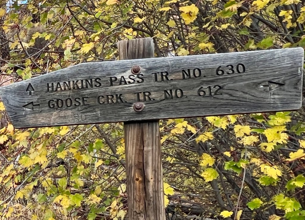 The two-hour drive from Golden was uneventful. The last thirty minutes was in the dark and on a dirt road which thankfully was in good condition. The large parking area at Goose Creek Trailhead had a handful of cars. A clear sky full of twinkling stars greeted us as we donned our backpacks and headed into the wilderness. We got our self-serve permit and tried to read the signs in the dark before heading in. The consistency of signage on entering wilderness areas gave us warm familiarity.