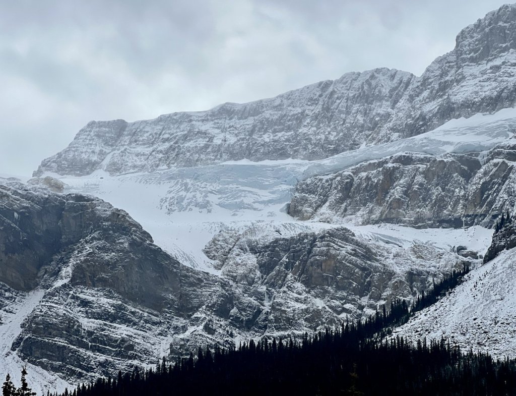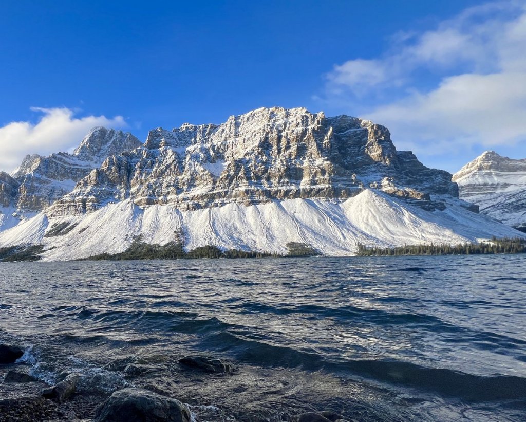 Bow Lake is the headwaters of the Bow RiverBow River exits the lake and flows through Banff, Canmore, and Calgary, before entering Hudson Bay.This viewpoint of Peyto Lake was the highest on the parkway.A few trees remain standing in the ice flow.We got a preview of where the Icefields Parkway was taking us next.We were not wearing the best shoes for walking on icy snow. Janet and Kylie turned around early while Samuel and I continued to the viewpoint, though coming back down the trail was interesting!A stop took us to this beautiful bridge over the Mistaya River.The Waterfowl Lakes did not have much waterfowl, but the views were still great.
