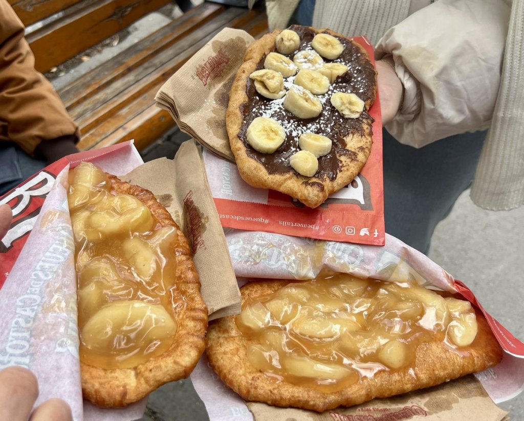 We enjoyed some Beaver Tails. Our buffet dinner at the top of the gondola had the best views and some of the trip’s tastiest food, and was no more expensive than food in Banff, which was expensive…While most of the Fairmont Lake Louise hotel is offlimits to non-guests, “The Guide’s Pantry” is a coffee shop that is open to all and served lovely warming drinks.The Trailhead Cafe in Lake Louise had the perfect backdrop, as well as serving great breakfast sandwiches.While it was great to visit restaurants and coffee houses, picnics in the car provided the best views!