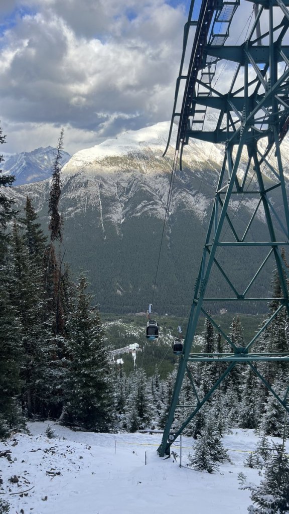 The disappointment of the cave was quickly overcome with a trip up Sulphur Mountain on Banff Gondola. Ascending 2,300ft to 7,500ft, we were greeted by much more snow and icy winds, but the views were even more amazing than in the valley.