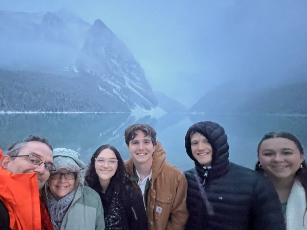 The gang with the pre-dawn Lake Louise.Five of us conspired with Samuel to set up the perfect ask.It wasn’t quite the sunrise that we were expecting, but the snow turned it into a magical moment and we are all very happy that Kylie is joining the family!As the sun rose, the lake’s beauty blossomed. A few magpies flew close by.Warming coffee and hot chocolate at the hotel.