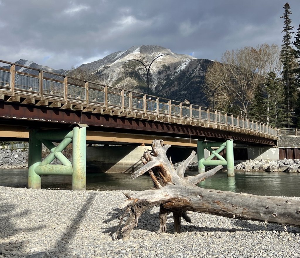 The Canmore Engine Bridge with the Rundle range in the background.At this time of year, the Bow River is low, but logs like this showed how much higher the river is when the snow melts in the spring.Peaceful with the best views.Canmore felt more like a mountain town than Banff.