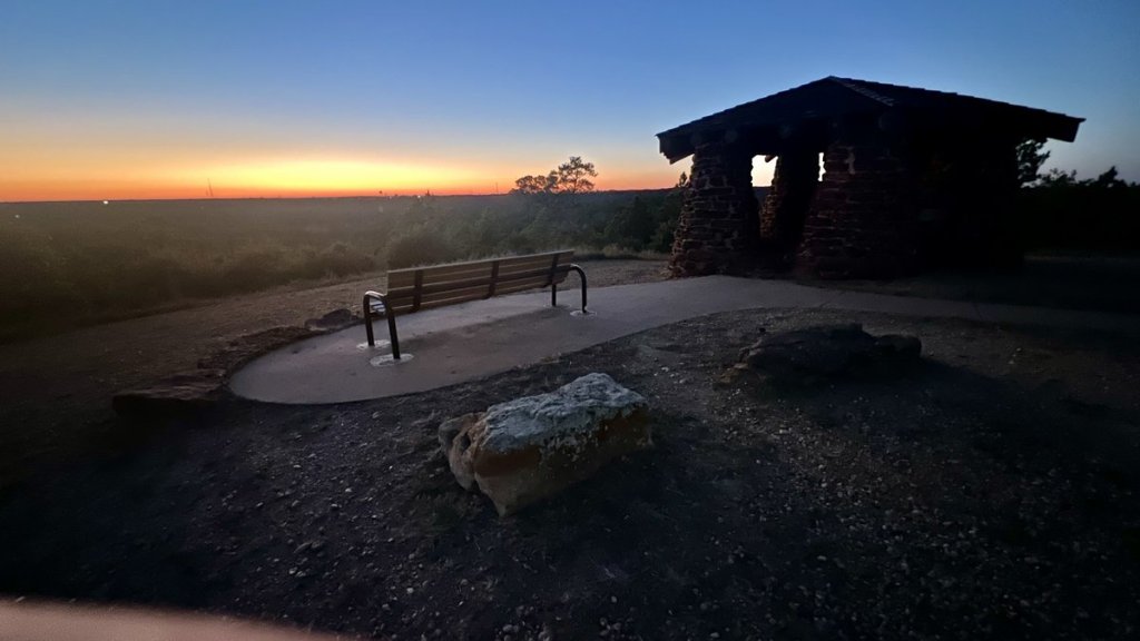 In addition to the dryer climate, Bastrop was also hillier. East Texas is generally flat, through the hiking trail goes into many gullies, some quite deep, so hiking there involves hill climbing. Bastrop State Park was much more developed than the Sabine National Forest, with sealed roads taking us to multiple viewpoints. Bastrop’s undulations yielded scenic overlooks, often with a CCC shelter.