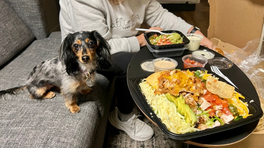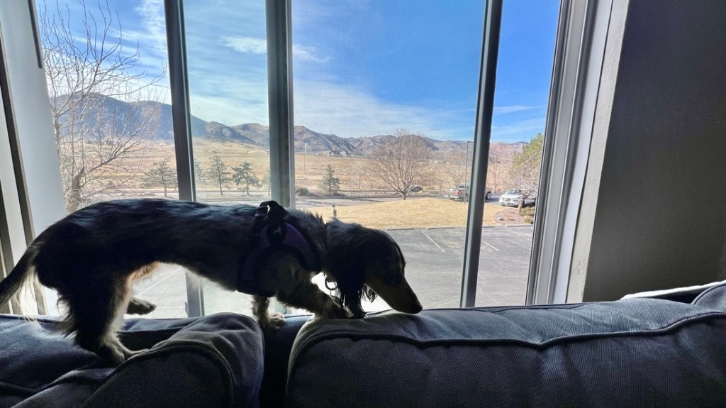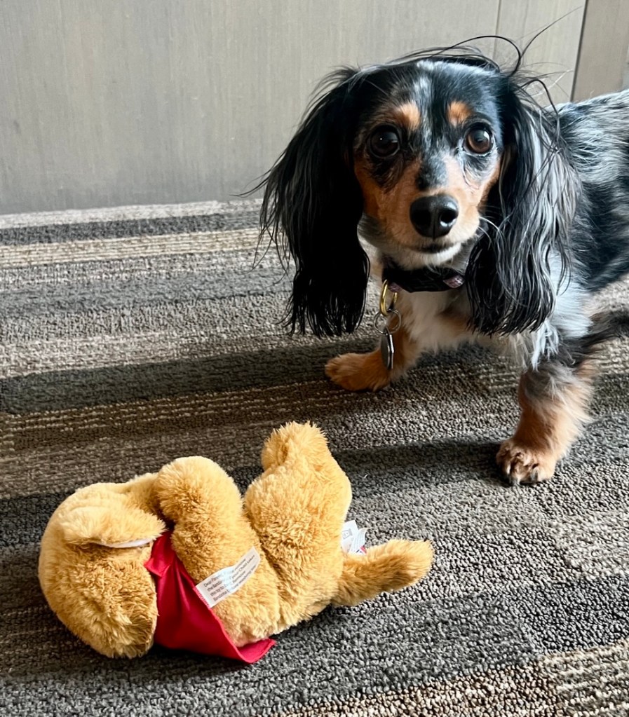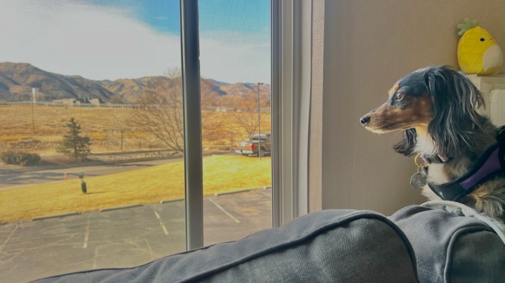 After another long nap, I knew we were arriving somewhere as the road turned bumpy. I got really excited as my humans talked about getting dinner from Chewy’s, and they have great dog treats. I was disappointed as it ended up being Mexican food from Chuy’s, and I don’t even like their chips! We ate in our hotel room as restaurants won’t let us in, even though my humans exist for my emotional support.