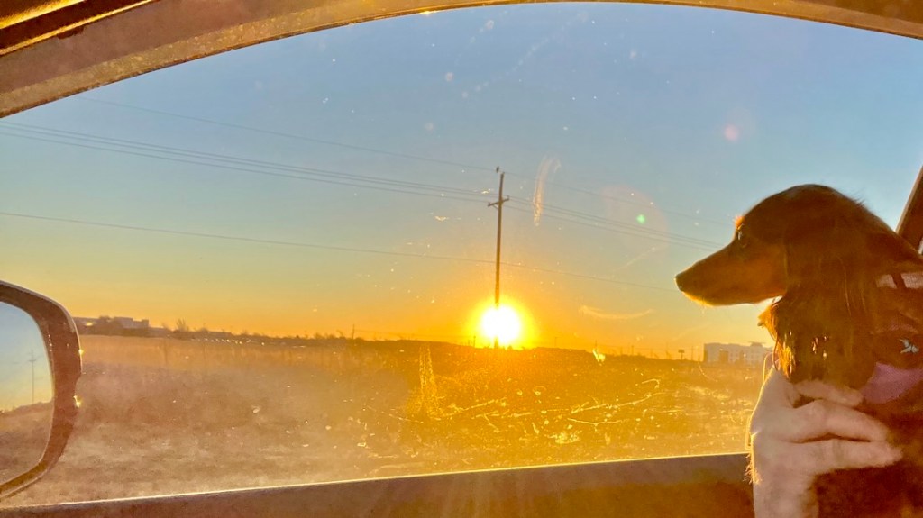 We stayed in a hat at a place sounding like an armadillo (ed. the Hyatt in Amarillo). We started watching a great dog movie, but it was very sad so I couldn’t watch it any more (ed. John Wick).