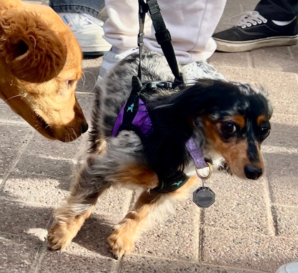 Next, I met Sunny. There were lots of her kind around. I sensed that this was why we had made the trip as there were so many like Sunny, and they were all so happy and friendly. Even their humans were more joyful than usual.
