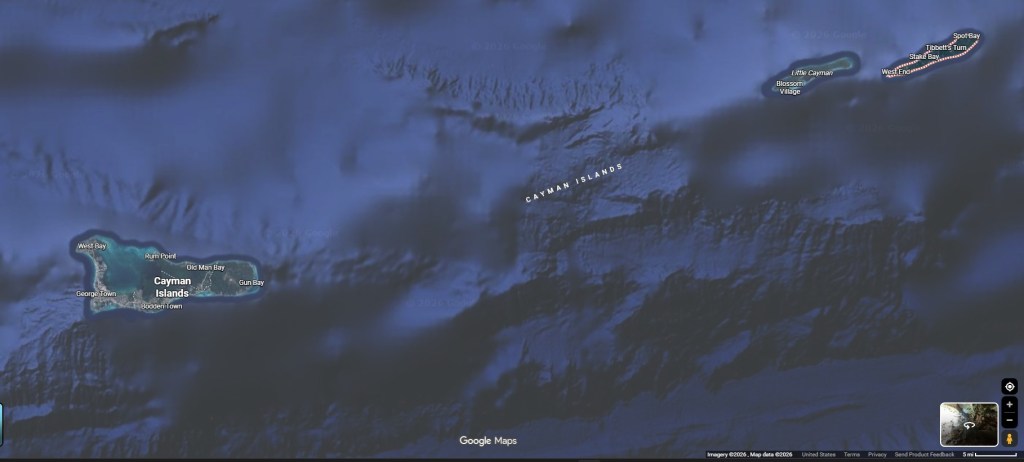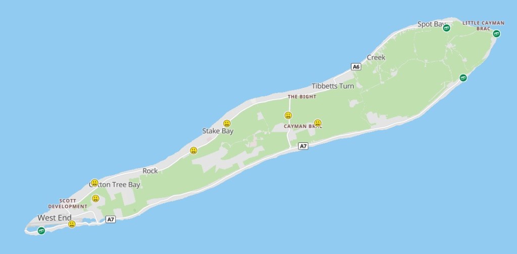 The Cayman Islands are a self-governing British Overseas Territory which comprises the three islands of Grand Cayman, Cayman Brac, and Little Cayman. Grand Cayman is the largest and most populous island by orders of magnitude. Cayman Brac is about 12 miles long and a mile wide. It is located about 5 miles from Little Cayman and 90 miles from Grand Cayman. The island has a prominent bluff rising 140ft above sea level at its eastern end, with “brac” being the Gaelic word for a bluff. The islands lie on the Cayman Ridge, a prominent undersea mountain range that runs from Cuba to Belize.