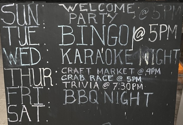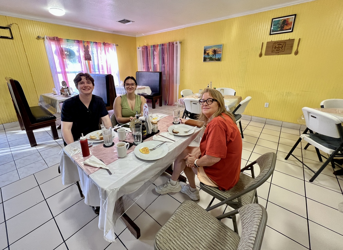 There was a selection of several grocery stores selling the basics, and a broad range of other goods, including Chick-fil-A sauce, mattresses, playing cards, and seasickness medication. We were able to find what we needed, including aloe vera for Samuel, though the prices reflected the island’s isolation. A weekly barge brought fresh supplies to the island, but bad weather could delay its arrival, leading to food spoiling. We learned the Farm had a weekly market of its fresh, local produce, but we missed it.