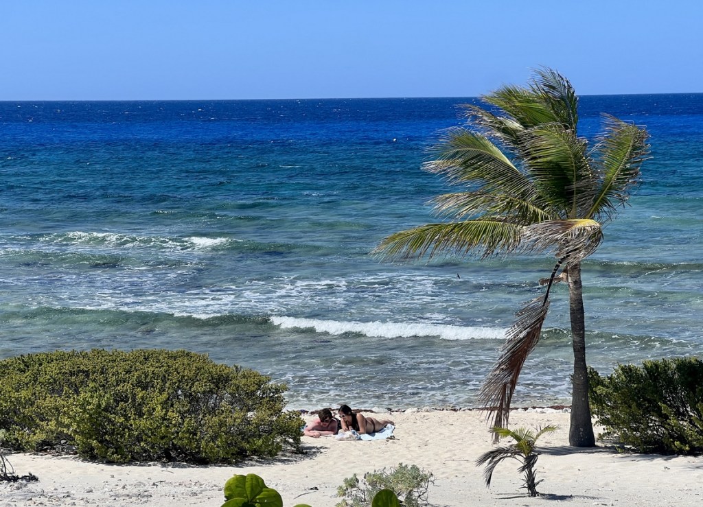 We stayed in a VRBO with 3 bedrooms, 2 bathrooms, and great views of the sea. We could even see Little Cayman on the horizon, and the sound of the breaking waves made it special. We had the whole of the house’s upstairs, and a separate, one-bedroom apartment downstairs was occupied by someone else for about half of our stay. The kitchen was well equipped for our self-catered lunches and dinners.