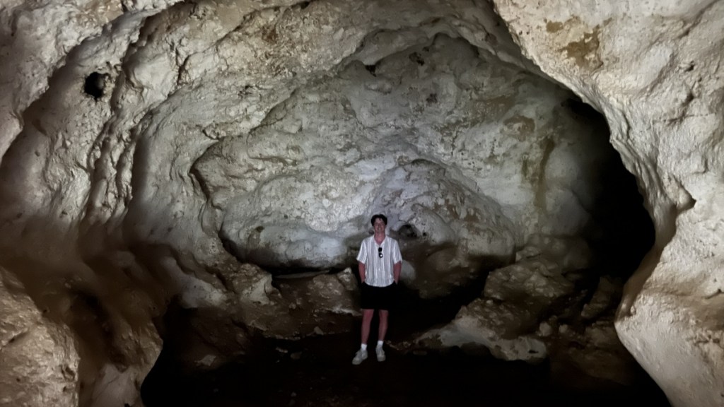 Bat Cave was larger with some cool formations though we didn’t see any bats! We could see the sea from the cave and tried to imagine riding out a hurricane here.