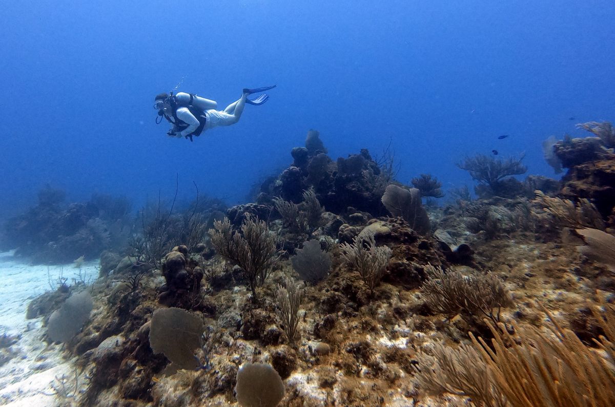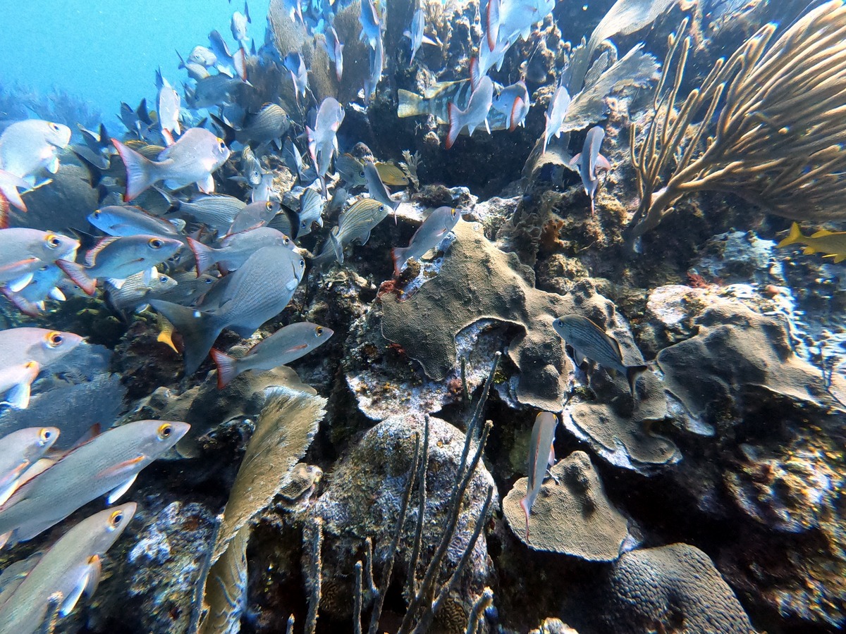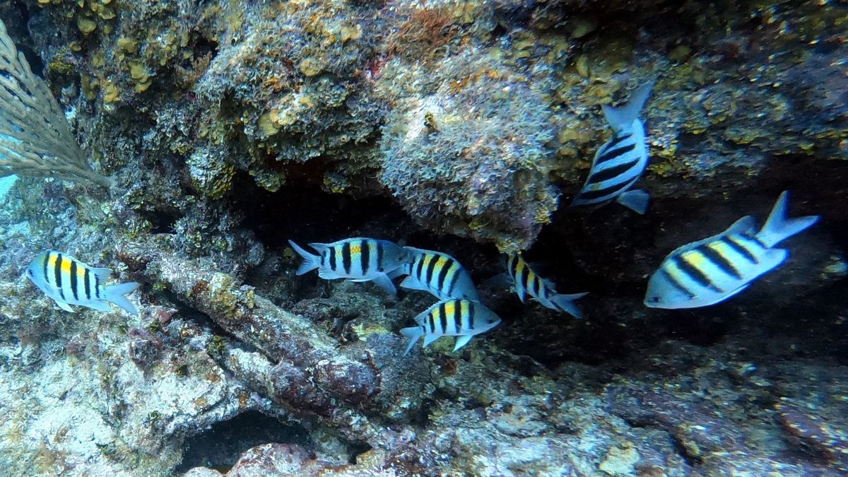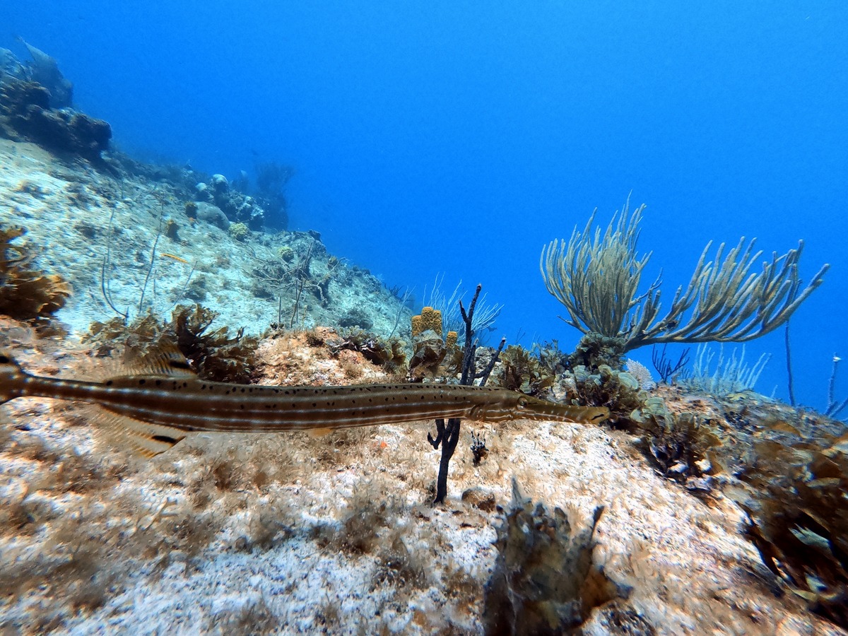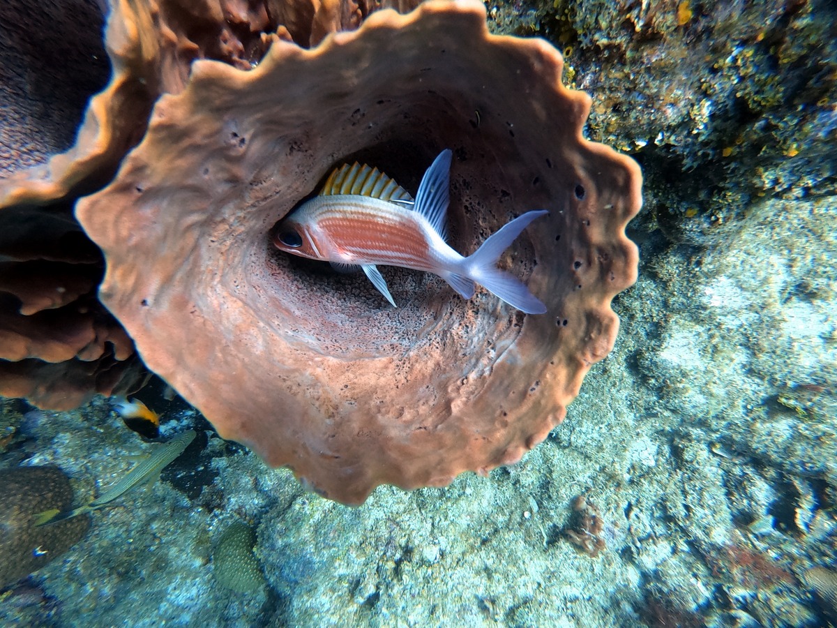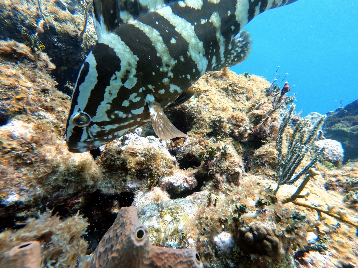 Underwater, the mixture of reef and sand yielded different aquatic life, from tube worms to conch.