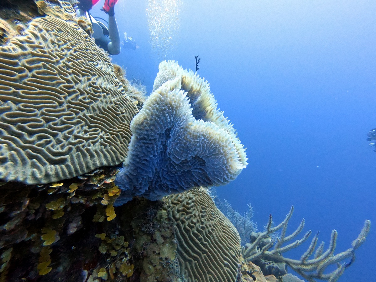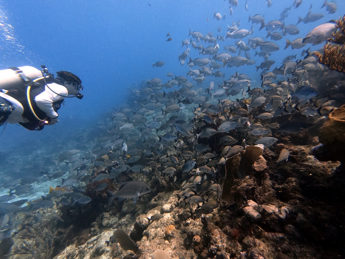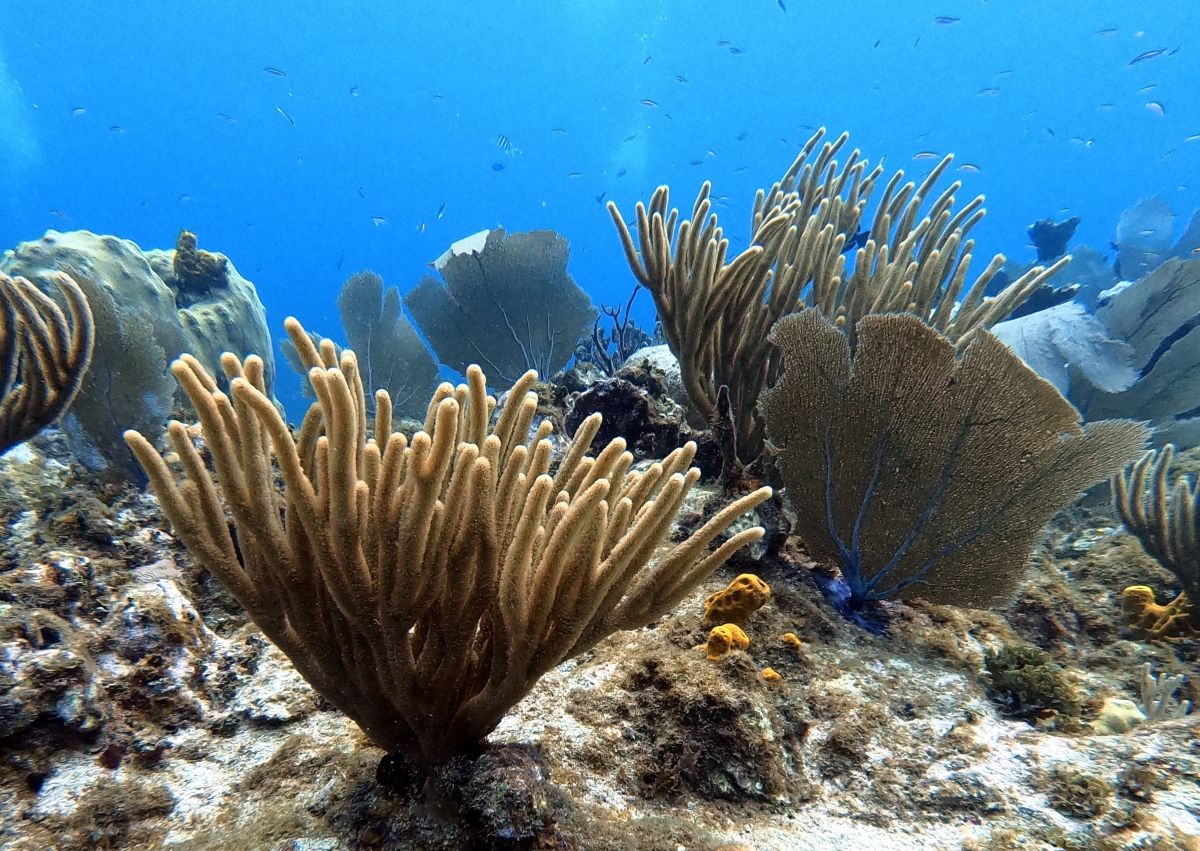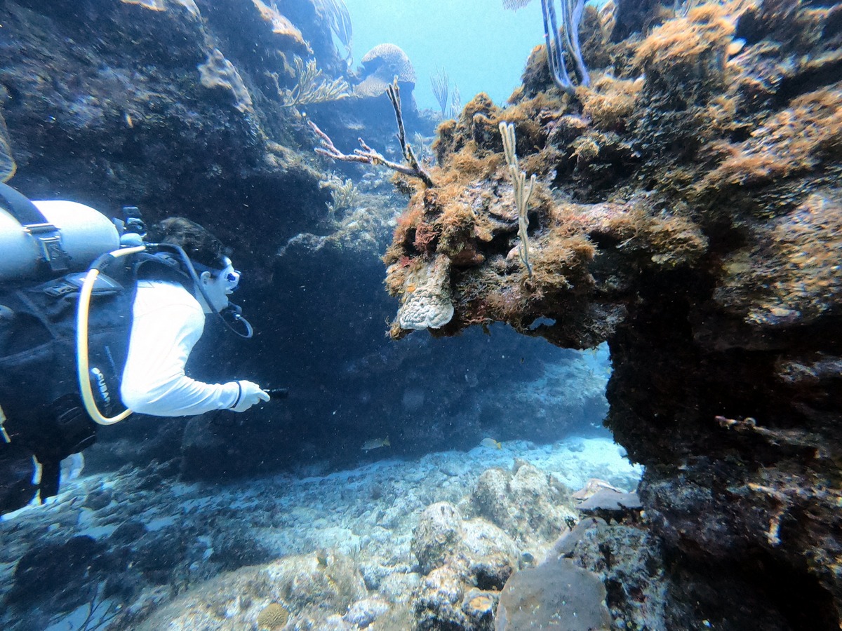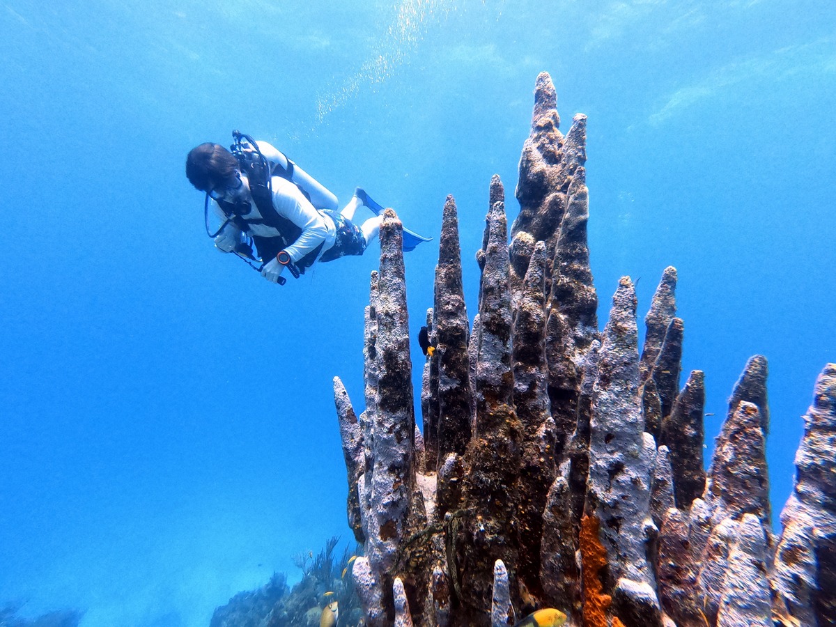 Underwater, the mixture of reef and sand yielded different aquatic life, from tube worms to conch.