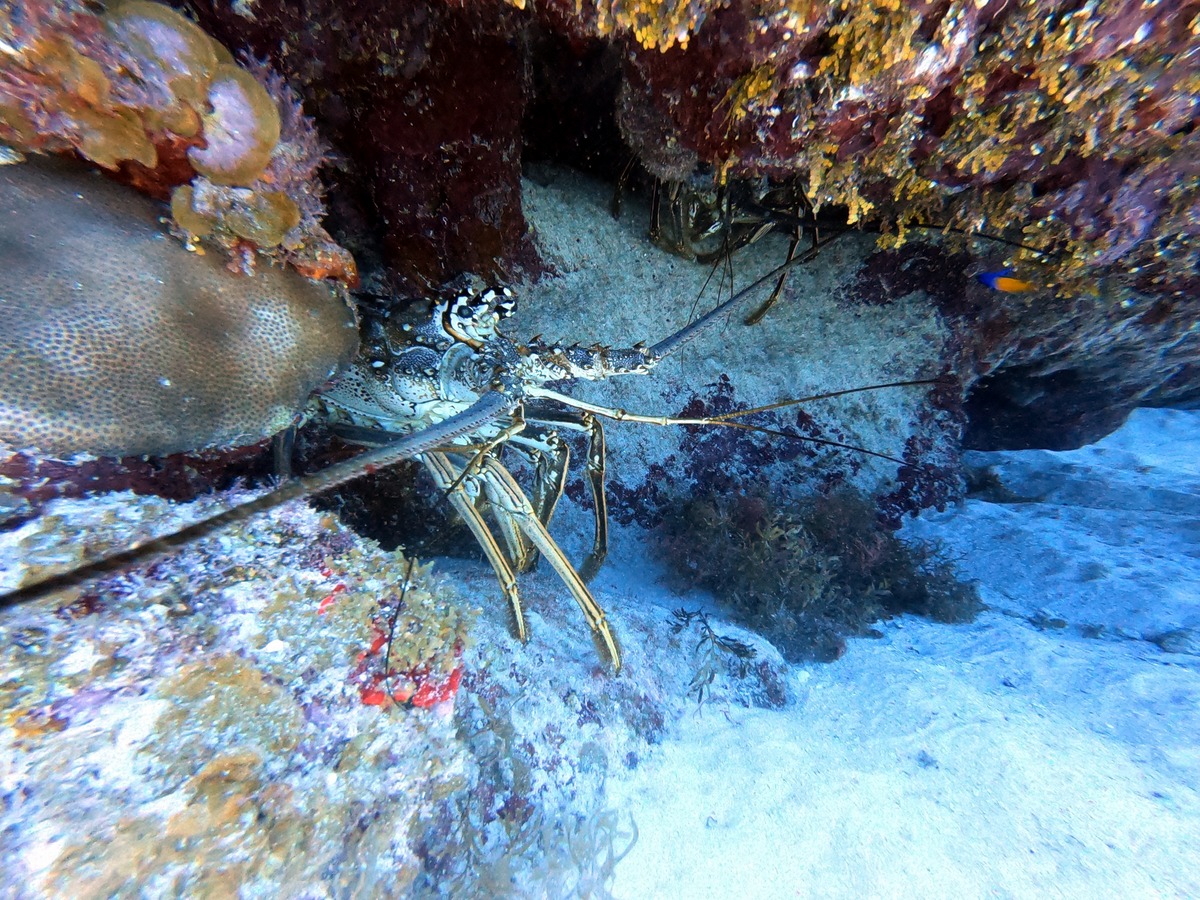 The second day’s second dive was at the End of Island site, close to our house. We enjoyed lots of life, including a slipper lobster, and another lobster that nearly bumped into me!