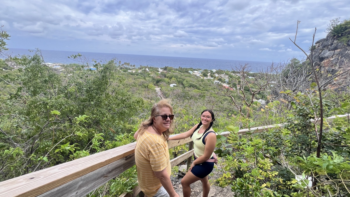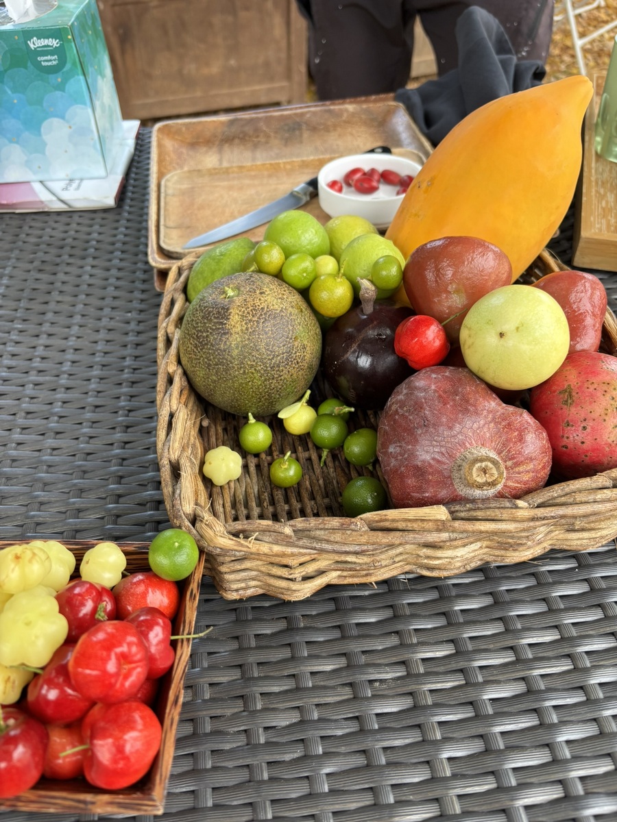 Janet and Kylie greatly enjoyed a farm tour at Soleil d’Or. They were shown how the farm grows produce on the top of the bluff, including exotic fruits like papaya, mango, and pomegranate. They tasted Miracle Fruit, which alters one’s taste buds such that sour tastes sweet. There were tons of egg-laying chickens roaming with the rock iguanas.