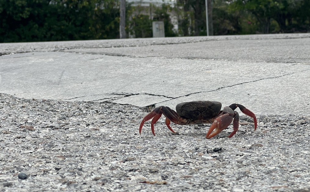 The Brac Snack Shack provided timely hamburgers after a morning of exploring the island. The food was made to order, so it took a while. There was shaded seating, and we passed the time watching a crab crossing the road!