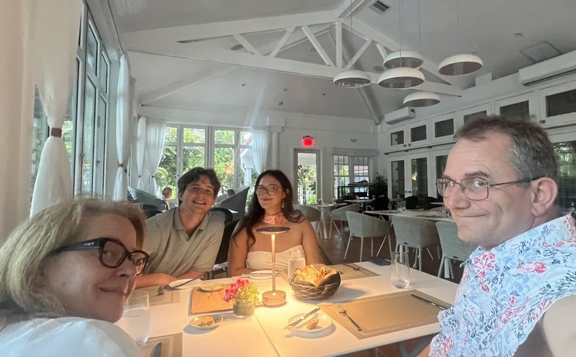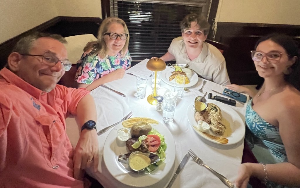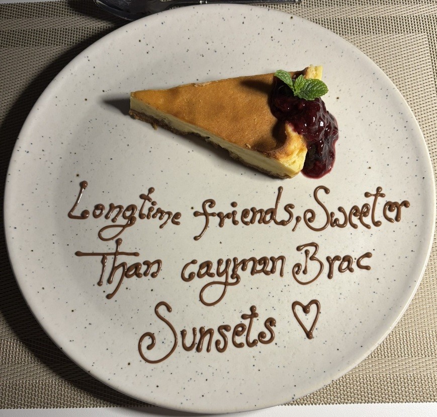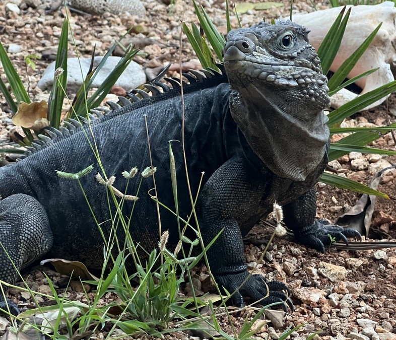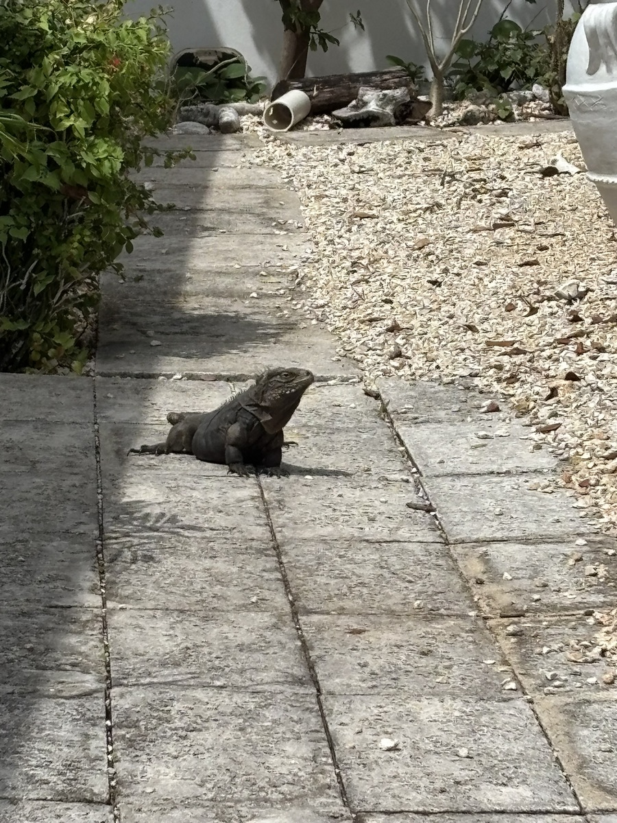 Our final dinner on Cayman Brac was a fine “farm to table” meal at the Farm Restaurant. While it was all yummy, the standout dish was Samuel’s octopus tentacle! Lori, whose daughter had worked at the farm, arranged for a special dessert for us, which was a very sweet surprise! The large Cayman rock iguanas that roamed the grounds provided the evening’s entertainment.