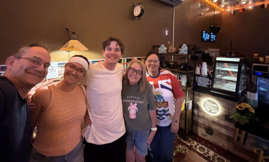 We met Lori, Janet’s friend from Cayman Brac, and enjoyed a long chat over fine coffees at Kabana Kai.