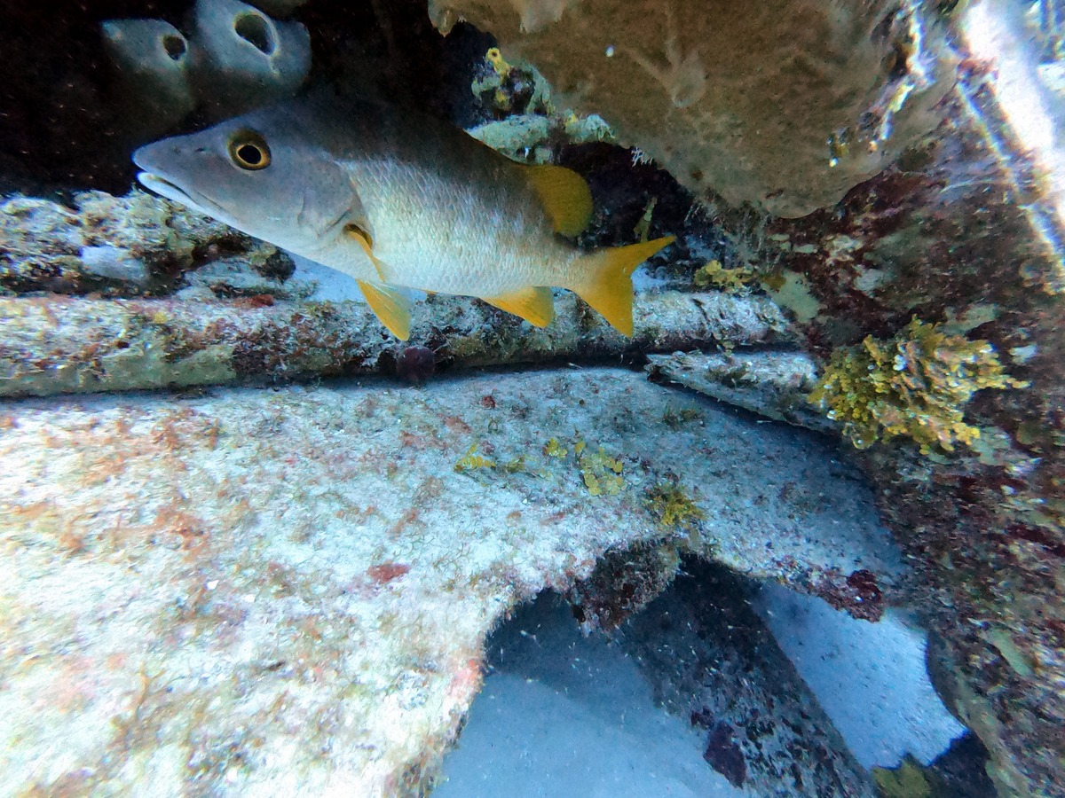 On the first day, we dove the Pillar Coral and the Sergeant Major sites, spending about 55 mins at up to about 50 ft each dive. I did not take my GoPro on these dives. The 20mph winds made the seas a bit choppy, so I found some seasickness pills for future days, as I had felt a bit queasy. They were good dives to start the week, with a shark and lobsters in addition to lots of great fish, though my nausea was distracting!