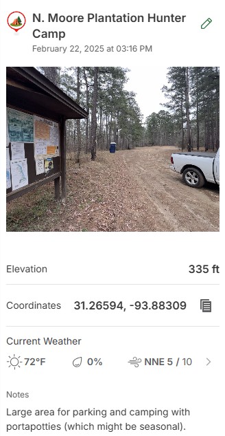 - Include a picture of where you parked so we can show others the parking area. Write a note estimating how many cars could park there, and any other comments such as the road condition. Try to avoid including your vehicle’s license plate in the photo!