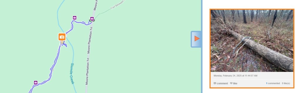 It would be very helpful if you could record trail hikes using the “ramblr” app, taking photos of obstacles in the app, adding notes, and measuring the diameter of fallen trees. The location and size of fallen trees determine the maintenance need.