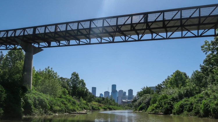 The Buffalo Bayou runs through central Houston. There is a 26-mile section that runs from below the Addicks Dam at Highway 6 to Allen’s Landing in the center of the city. Allen’s Landing is recognized as the birthplace of Houston and served as the city’s first wharf.