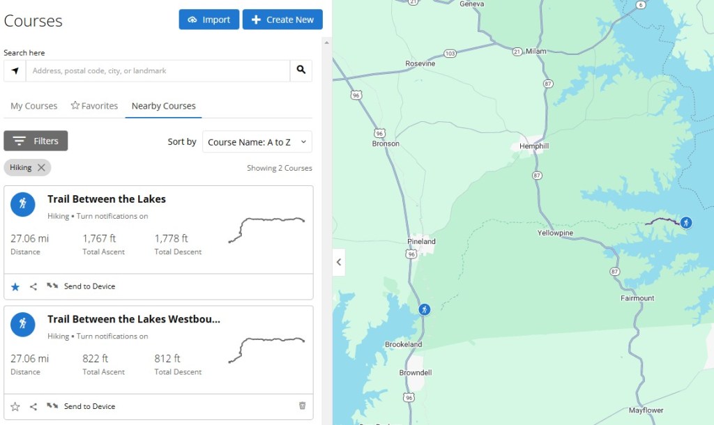 Garmin Watch. Several Garmin watches support navigating an uploaded GPX course. A few (Fenix, Epix and Forerunner 955) also support maps. This article explains how to create a GPX course and Garmin lists compatible devices here. AllTrails explains here how to send an AllTrail route to Garmin Connect. However, the TBTL is already available in Garmin Connect as a course that you can send to your watch – either eastbound or westbound.